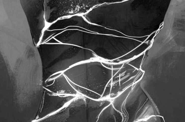 The fractures that trace along her skin shimmer with the purest crystal—bearing a striking resemblance to that of the Crystal Tower itself. At times, they pulse softly beneath the surface, catching the light as though something within them stirs and breathes, alive yet silent.